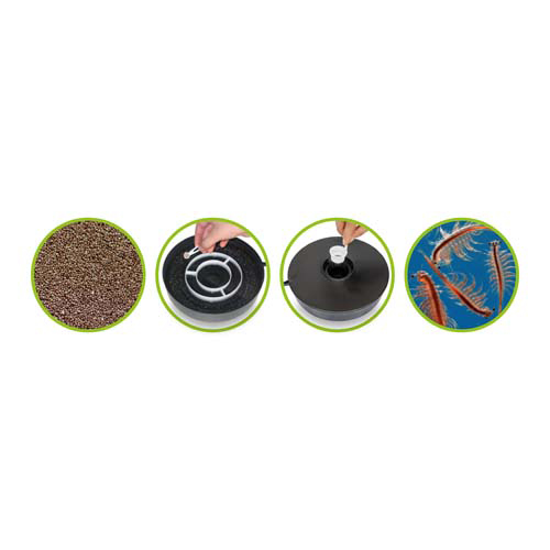 Einfachste Art Artemia Eier zum schlüpfen zu bringen. Sie benötigen lediglich die Eier und das Salz. Ein Anschluss von Belüftern ist nicht mehr notwendig. Einfache Entnahme von den Nauplien zum verfüttern an ihre Jungfische. Nun mit beiliegender Futterpipette!