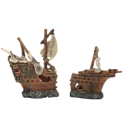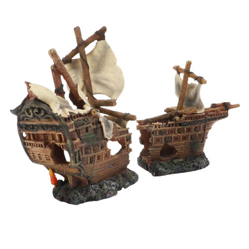 Detailgetreue Nachbildungen von Schiffswracks zur Dekoration von Aquarien.Die Wracks bieten den Tieren viel Platz zum Verstecken und Hindurchschwimmen.Durch die Herstellung aus Kunstharz ist die Oberfläche robust und leicht zu reinigen und beeinträchtigt in keinster Weise die Wasserqualität.Ein absoluter Blickfang in Ihrem Aquarium!