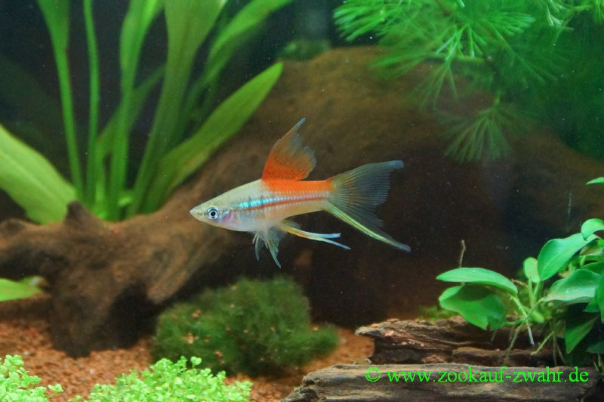 Friedlicher und aktiver Schwarmfisch, benötigt sauberes, gut gefiltertes Wasser und ausreichend Schwimmraum.