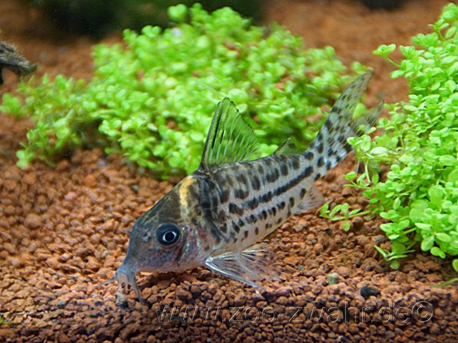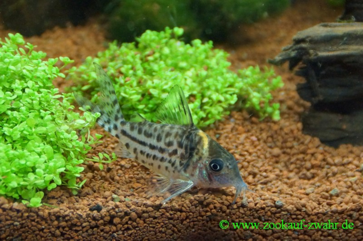 Friedlicher Bodenfisch, der in Gruppen lebt. Regelmäßige Wasserpflege und ein sauberer Bodengrund sind essenziell.